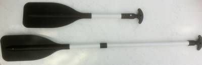 Ruderblatt und Griff aus schwarzem Kunststoff, Rohr aus Eloxal. Bei der aktuellen Version ist das Rohr nicht mehr weiß, sondern Silber. Rohr 29/25 mm