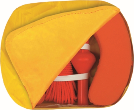 Talamex Rettungskit, verpackt in einen Kuststofftasche, die an der Reling befestigt werden kann.