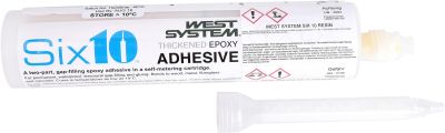 Beim Six10 sind beide Komponenten des Epoxid-Klebers in einer Kartusche untergebracht Die beiden Komponenten werden durch eine Statik-Mixtülle miteinander vermischt. Er eignet sich für das dauerhafte wasserfeste Verkleben und Verfüllen von Rissen und Fugen.