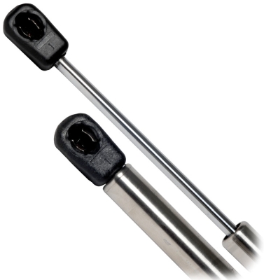 Gasdruckfedern aus rostfreiem Edelstahl (AISI316) mit Kugelkopf, Augterminal aus Verbundmaterial. Optional kann auch des Edelstahl-Augterminal, Ø Kugelkopf 10 mm, Art.-Nr. EM38.020.25, verwendet werden.