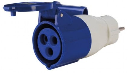Adapter von CEE-Kupplung auf Schuko-Stecker.