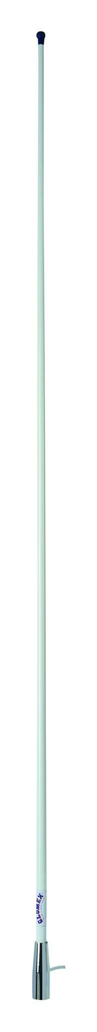 Zuverlässige, solide Stabantenne aus weißem Glasfiber für Ribs und Motorboote. Verchromter Messingfuss mit 1 " Innengewinde, 1,5 m