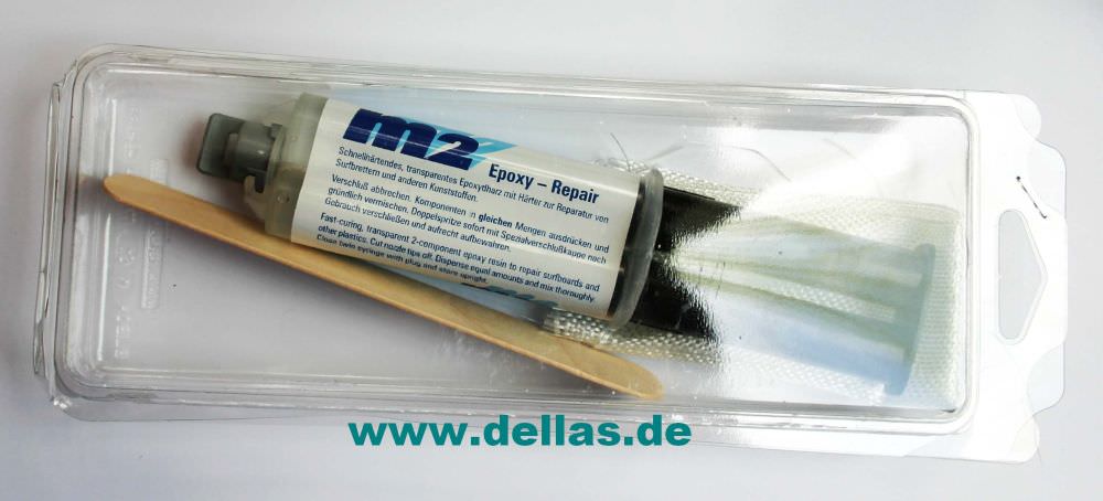 Inhalt: Epoxid Harz mit Härter in Doppelkartusche, Spachtel und 10 x 20 cm Matte