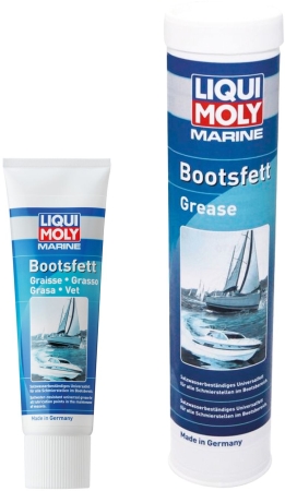 Bootsfett Hochleistungsfett für alle Schmierstellen im Bootsbereich. Reibungs- und verschleißmindernd. Extrem lange schmierfähig. Alterungs- und walkstabil, kalt- und heißwasserbeständig. Wasserabweisend und absolut seewasserfest. Zuverlässiger Korrosionsschutz. Entspricht der NATO-Marine-Spezifikation G460. Beständig in nasser Umgebung, sorgt für gutes Abdichten. Kennzeichnung nach DIN 51502 KF 2 G-20.
