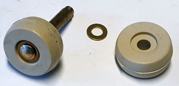 Das Set besteht aus einer Gumirolle, die auf der Messingachse montiert ist, einer losen Gummirolle, sowie einer Messing U-Scheibe.