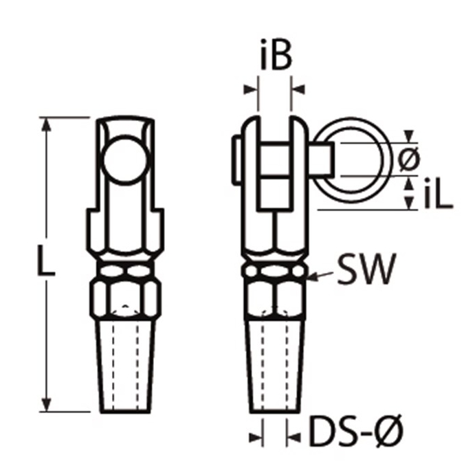 | Drahtseil-Durchmesser (DS-Ø) | Innere Breite (iB) | Innere Länge (iL) | Länge (L) | Material-Durchmesser (ø) |