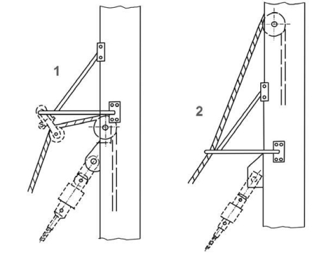 Je nach Takelungsart und Austritt des Spinnakerfalls aus dem Mast kann das Fall direkt durch den Galgen oder durch einen zusätzlichen Block geführt werden.