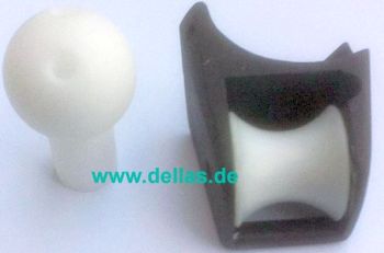 Schrägzug-Kugellager-Rolle zum Annieten an den Mast für Spibaum-Schleuder, passend für Super-Spars und Proctor Seldén-Masten. Set mit Spikugel für 25 mm Spibaum (Innen-Ø 22 mm)