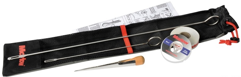 Inhalt: 2 Spleißnadeln, Marlspieker, weißes Taklingsgarn Nr. 4, Tape und Spleißanleitung.